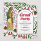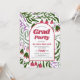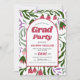 Examensår 2026 bohemisk valv och färgrika retro folkloristiska blommor Examen Inbjudan. Denna inbjudan till examensfirande för klassen 2026 har en boho-valv och färgrika retro folkloristiska blommor, med anpassningsbar text för en personlig touch. Bakgrunden på inbjudan har livfulla retro folkloristiska blommor i nyanser av magenta och grönt, vilket ger en festlig touch till designen. Texten "Grad Party" visas djärvt på inbjudan. Baksidan av inbjudan har utrymme för ett foto av den som tagit examen inom boho-valvet, vilket skapar en meningsfull souvenir.