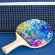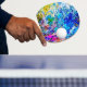 Makrovy av en palett i färg med en blandning av oljefärg av olika färger. Ljusstark och färgstark abstrakt är den här paletten som den är. Bara en regnbåge med färglös oljefärg. - I vårt liv finns det ett enda färg, precis som på en konstnärspalett, som ger en mening av liv och konst. Det är färg i kärlek. (Marc Chagall)