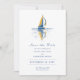 Anpassa det rena, rena, skarpa lodrät Inbjudningskort för möhippan, designat med en originalmarin blå och gult enkel konstnärlig målning av en segelbåt med en vacker reflektion av den i havet. Helt anpassade och ställ in som mall för enkel anpassning. Minimalistisk nautisk design. Du kan också ändra hörnet stil för den här inbjudan.