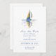 Anpassa det rena, rena, skarpa lodrät Inbjudningskort för möhippan, designat med en originalmarin blå och gult enkel konstnärlig målning av en segelbåt med en vacker reflektion av den i havet. Helt anpassade och ställ in som mall för enkel anpassning. Minimalistisk nautisk design. Du kan också ändra hörnet stil för den här inbjudan.