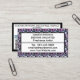 Frilansartist eller affärstypografi i svart mot vit och svart rektangel. Ange namn, telefonnummer och webbplats eller annan information på framsidan. Geometriskt block mönster i rosa, lila, blått, svart och vitt (behålla eller Ladda upp en egen bild för att fylla utrymmet). Baksidan har vit bakgrund med geometrisk svart gräns. Ladda upp din Logotyp, webbplats QR-kod på lämnat sida och social-medielänk (eller annan) på högerna. Klicka på Anpassa om du vill ändra teckensnitt, färg, stil eller storlek, flytta runt text och bilder eller lägga till eller ta bort bildplatshållare som inte behövs. Originalteckning och design av TamiraZDesigns.