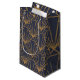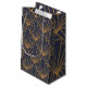 Den här presentsäcken har konsthandlingen av diamanter och trianglar i guld på en fält av blått.