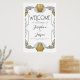 Art Deco 1920-tal Roaring 20s Födelsedags Bröllop Bebis Shower Bröllops Shower Jubileum Företagets Högtid Vit och Guld Välkomstskylt