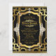 Art Deco-födelsedagsinbjudan med fantastiska diamanter på en rik svart och guld Art Deco Gatsby gammal Hollywood glam-förebild bakgrund. Denna födelsedagsinbjudan i gammal Hollywood-stil är lätt att anpassa genom att lägga till dina evenemangsuppgifter. Detta är en tryckt design utan riktiga diamanter, etc.