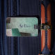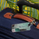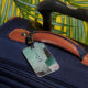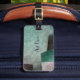 Den här bagagetaggen är en elegant art deco-inspirerad abstrakt. Konstruktionen är unik och sofistikerad och har en industriell känsla i skalor av grönt, mauve och svart i block av färg. Anpassa med ditt namn och anpassa med din kontaktinformation på baksidan.