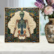 Embrace the mysteries of life and art with this stunning Ceramic Tile, featuring a captivating Art Deco design. A meticulously rendered skeleton takes center stage, bathed in a radiant sunburst of golden rays against a neutral background. The surrounding frame boasts intricate geometric patterns in deep blues, rich greens, and shimmering gold accents, reminiscent of the glamorous Art Deco era. This unique piece is perfect for adding a touch of sophisticated, vintage charm to any space, whether as a standalone decorative accent or as part of a larger tiled installation. Its detailed artistry and striking color palette make it a conversation starter and a timeless addition to your home décor.