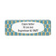 Dessa returetiketter har en konsdekodesign av bågar och upp- och nedåt Ys som upprepar sig över designen i turkos och gult på en vit fält. Vill du ha annorlunda färg? Säg det.