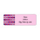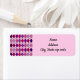 Dessa returetiketter har en konsdekodesign av diamantformer som är tillverkade av överlappande vinklar i svart linjer-färgad i skuggor av lila och rosa med diagonalt svart linjer skapar designen som argyle