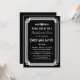 De här inbjudningarna från en bachelorette-fest har en vit och svart färg-palett, en geometrisk ram och andra stilistiska detaljer som alla inspireras av Art Deco och de kommande tjugo åren. Du kan anpassa exempeltexten till fälten.