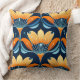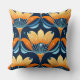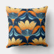 Art Deco-blåa orange blommor Kudde