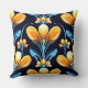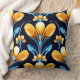 Art Deco-blåa orange blommor Kudde