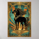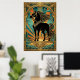 Art Deco Black Horse Statue Sunburst Teal Gold Poster