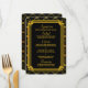 De här menykorten har en svart och guld-färg-palett, ett geometriskt ram och ett geometriskt mönster, andra stilistiska detaljer som alla inspireras av Art Deco och de kommande 20-talen. Du kan anpassa exempeltexten till fält.