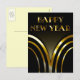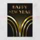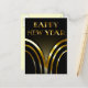 Slimmad, svart, geometrisk "sconces" som accentueras genom att lysa guld tänd frasen "Gott nytt år" ovan på framsidan av denna chic, snyggt Art Deco-inspirerat vykort. Från min digitalt skapat originalbild.