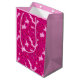 An Art Deco mönster baserat på ett traditionellt, stiliserat krysanthemum mönster som används i japanska textilier, i nyanser av fuchsisk rosa/magenta med blek rosa bakgrund