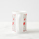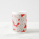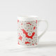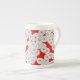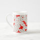 Art Deco-blomman mönster - vit på rött Benporslin Mugg