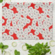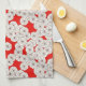Art Deco-blomman mönster - vit på rött Kökshandduk