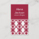 Snyggt och sofistikerad Art Deco-Affärskort i rosa av mörk med blommigt som motiv för i mönster. Den här utformningen av eleganten skulle vara perfekt för kreativ- eller glam-affärstyper som inredingsdesign. Enkel att anpassa, lägg bara till information om ditt företag i fält som tillhandahålls. Klicka på Anpassa om du vill söka efter ytterligare anpassningsalternativ.