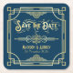 Art Deco Bröllop Elegant Guld Blue Spara datum Underlägg Papper Kvadrat