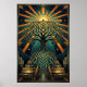 Art Deco Celtic Tree of Life Pyramid Gold Teal Poster
