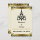 Art Deco chandelier black, guld Spara datum meddelande med en svart pråm, gräns i Art Deco stil och svart och guldfärgad blommigt på beige/ecru. Denna utformning av eleganten är ett modernt sätt att se på en vintage/närmare stil som liknar den i 20-talets och Underbara Gatsby. Det är en del av en bröllop-uppsättning och är helt och hållet anpassade.