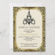 Art Deco chandelier black, guld inbjudningskort för möhippan med en svart pråm, gräns i Art Deco stil och svart och guldfärgad blommigt på beige/ecru. Denna utformning av eleganten är ett modernt sätt att se på en vintage/närmare stil som liknar den i 20-talets och Underbara Gatsby. Det är en del av en bröllop-uppsättning och är helt och hållet anpassade.