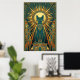 This playful art deco black cat climbs a stylized teal curtain with golden motion trails trailing behind. The geometric curtain folds and dynamic upward composition capture 1920s energy perfect for kitchens, hallways and creative spaces.