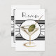 Den här söta martini-glasdesignen är full med en oliv. Den är starkt påverkad av dekorationens konst deco stil! Ett mycket unikt och snyggt inbjudan som skulle vara underbart för cocktail party, välgörenhetsevenemang och andra roligtar. *VIKTIG ANMÄRKNING Ta bort oönskad exempeltext från mallarna om du vill lämna anpassningsbarna tom, eventuell text som finns skrivs ut på slutprodukten.