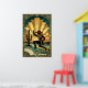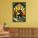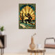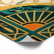 A dynamic celebration of Western grit and Art Deco elegance. This illustration features a cowgirl silhouette in a fringed suit expertly wielding a lasso in a desert coastal landscape. Set against a massive, fan-like golden sunburst and framed by intricate geometric borders with marble accents, this piece is perfect for a modern ranch or stylish home office.