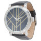 Abstraktens geometriska utformning i Art Deco stil med gyllene linjer dekoration på den grymge marblå bakgrunden