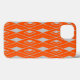 Den här telefonväskan har en konsthandbok med diamantformer på fält i orangen.