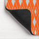 Den här musknappen har en konsdecodesign av diamantformer på fält i orangen.