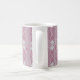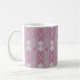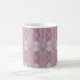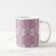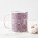 Mugg har en konsdecodesign av diamantformer och linjer på lilans fält.
