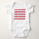 Byskostymen i baby har en konsdeco-design av vita hexagoner med en svart linje nedåt i mitten och rosa diamanter.