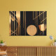 Förvandla din miljö med denna lyxiga abstrakta konst. Tunna gyllene linjer och metalliska cirklar kontrasterar mot djupsvart och skapar en sofistikerad Art Deco-komposition. Perfekt för modern inredning och premiumvarumärken.