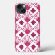 Telefonfodralet har en konsthandledning av betdiamanter med diagonaldiamanter av linjer och mörkare betdiamanter på färgad fält i vitt.