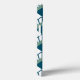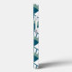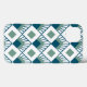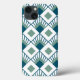 Den här telefonväskan har en konsthändelse av tealdiamanter med diagonaldiamanter av linjer och grönt av alger på en fält av vitt.