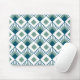 Denna musknapp har en konsdecodesign av tealdiamanter med diagonaldiamanter av linjer och grönt av alger på en fält av vitt.