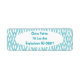 Dessa returetiketter har en Art Deco-design av diamanter som är kopplade till böjt linjer i turkos.