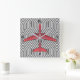 Art Deco-flygplan, korall Orange och Silver Grått Fyrkantig Klocka