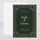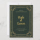 Rich, elegant, and deeply romantic. This Art Deco wedding invitation features a lush forest green background paired with golden geometric details – fan motifs, sharp chevrons, and delicate lines. The deep jewel tone combined with metallic gold creates a luxurious, nature‑inspired vintage look. Perfect for fall, winter, woodland, or black‑tie weddings.