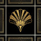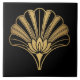 Art Deco Gold Lotus Fan Black Ceramic Tile Kakelplatta