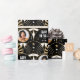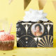 Lägg till en liten bit av Art Deco stil till din födelsedagspresent med den här anpassningsbarna papper fotoförpackning! En elegant presentfigursättning med ett geometriskt mönster av sammanlåsande fläkt, stjärnor och cirkelformat foto ramar. Anpassa mallen med två av dina favoritfoton och mottagarens namn i återo-stil-typografi. En perfekt för ett glamoröst tillfälle! Tryckt färg: svartvit och simulerad effekt av guld glitter. Finns med en projektionsyta eller en glansig avsluta.