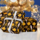 ART DECO GULA BLOMMOR,VITDELAR PÅ SVART PRESENTPAPPER