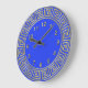 Art Deco Guld Blue Grekiska Nyckel Gräns DIY Backg Stor Klocka