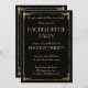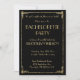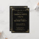 Guld folie Great Gatsby Art Deco Sjungbröllopsfest inbjudningskort med anpassningsbar text tryckt på svart bakgrund