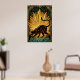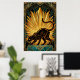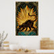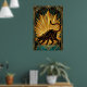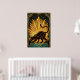 En slank svart katt sträcker sig graciöst mot en magnifik gyllene solstrålning. Med skarpa geometriska strålar och en djup teal marmorpostament, ger detta 1920-talsinspirerade mästerverk en djärv arkitektonisk energi till alla moderna interiörer eller gallerivågg.