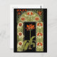 Röda blommor i orange omgivna av svartvit ornate art deco ram.