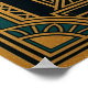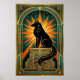 A sleek wolf silhouette sitting against a vibrant sunray background. Modern Art Deco fusion with a wild nature theme.