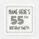 Denna lyxiga och 1920-1930-talets stil inspirerade till femtiofemte födelsedagskalender papper napkin-design har en personlig namn, en finare art deco stil inspirerade nummer "55:e", budskapet "FÖDELSEDAGSFEST!" och en gräns mönster som består av linjer. På födelsedagen kan pappra servetter som dessa användas vid ett party som firar någons femtiofemårsdag. [~Z0000613]